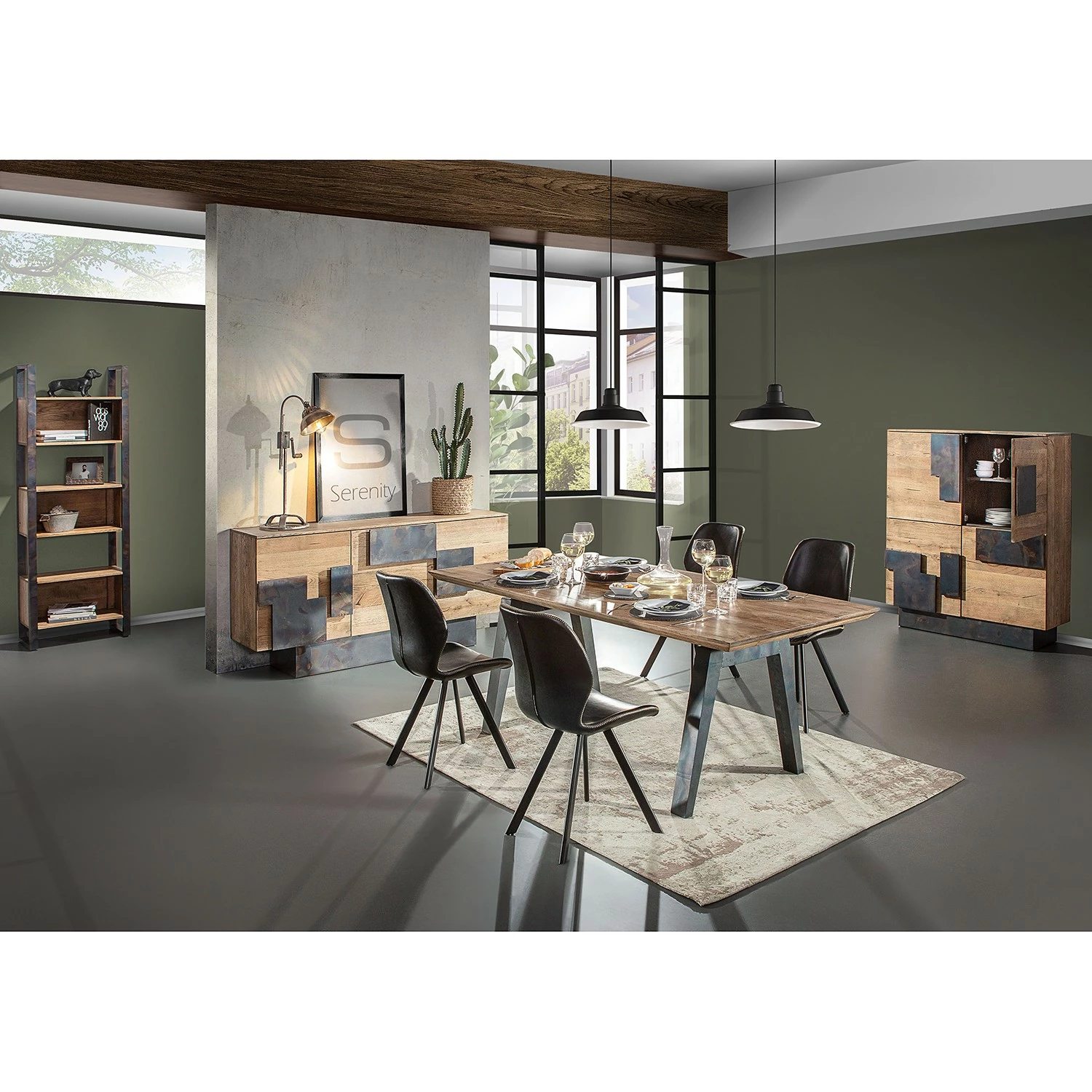 - Front & Korpus: Massivholz Eiche, gebeizt & lackiert