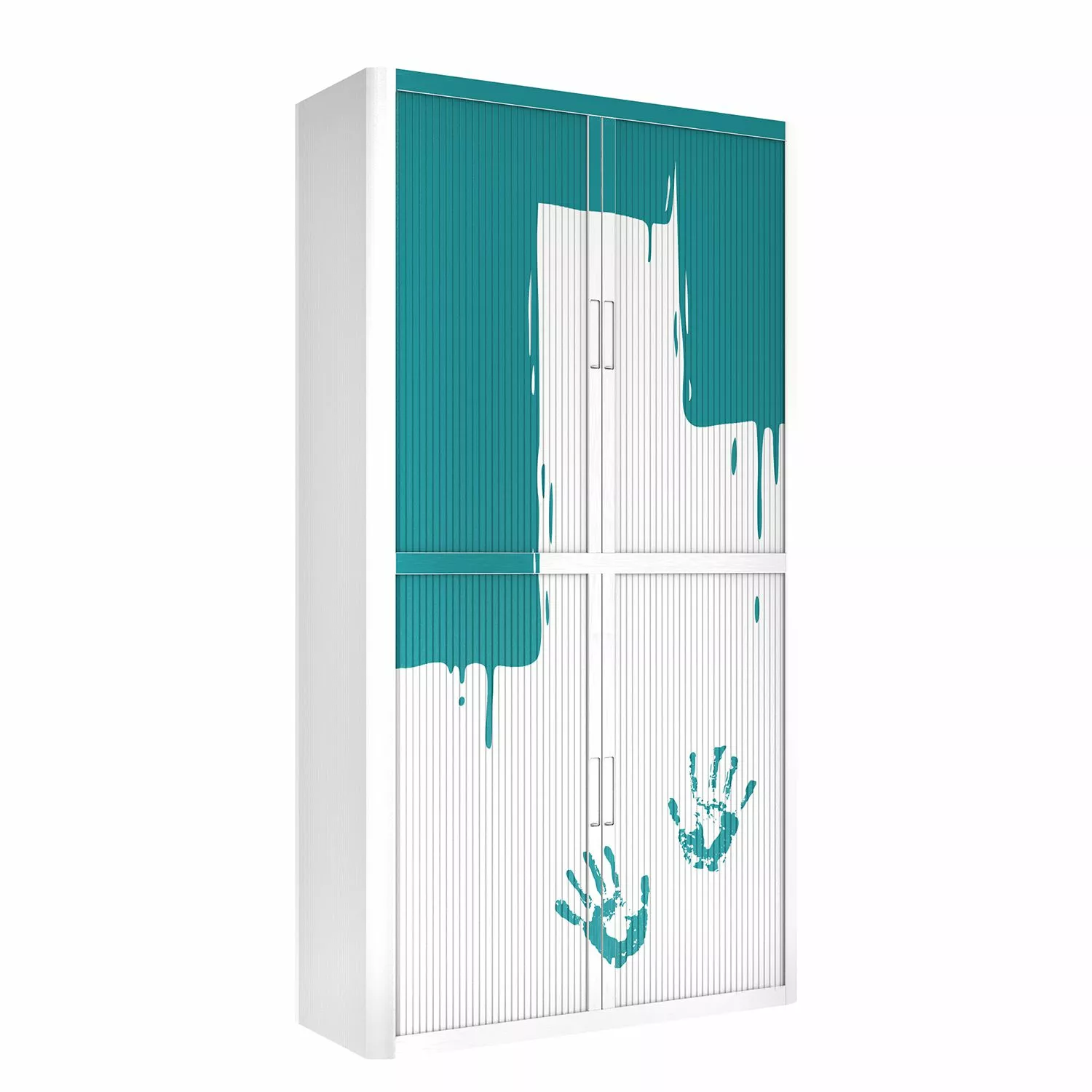 EasyOffice by Paperflow Aktenschrank easyOffice Stickers I – Weiß / Petrol – Höhe: 204 cm