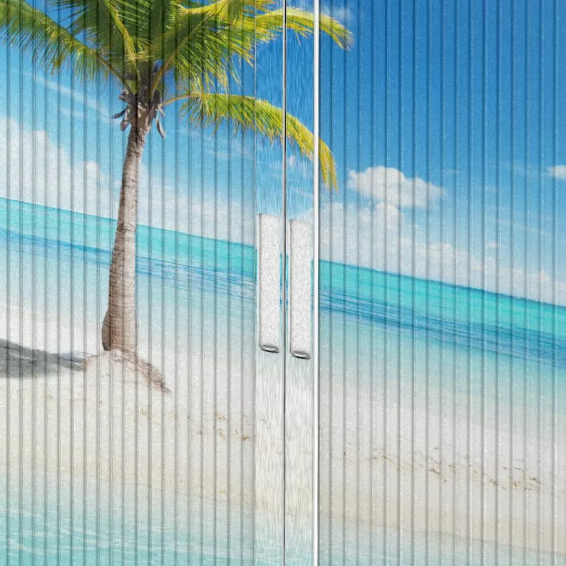 - Klare, geradlinige Form mit Südsee-Insel-Motiv