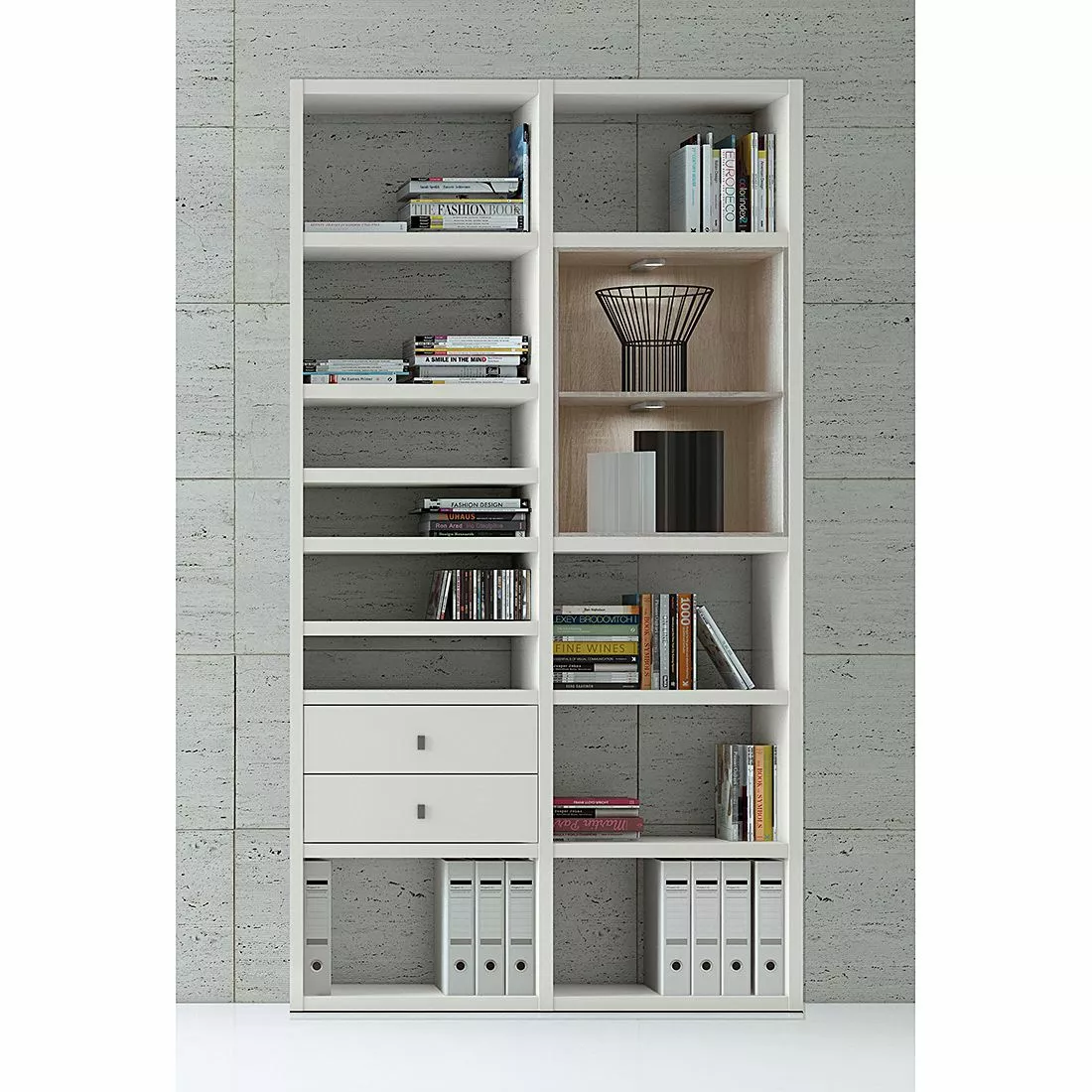 Fredriks Regal Emporior II – Weiß / Eiche Sonoma Dekor – Mit Beleuchtung