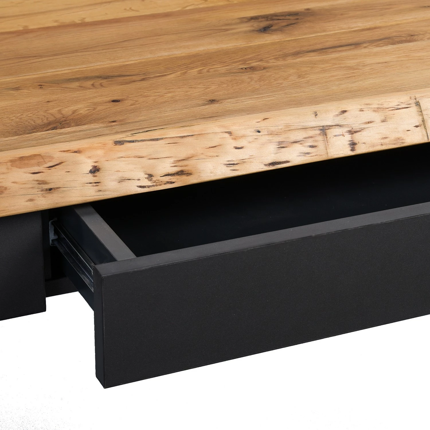 - Tischplatte: Massivholz Wildeiche, geölt