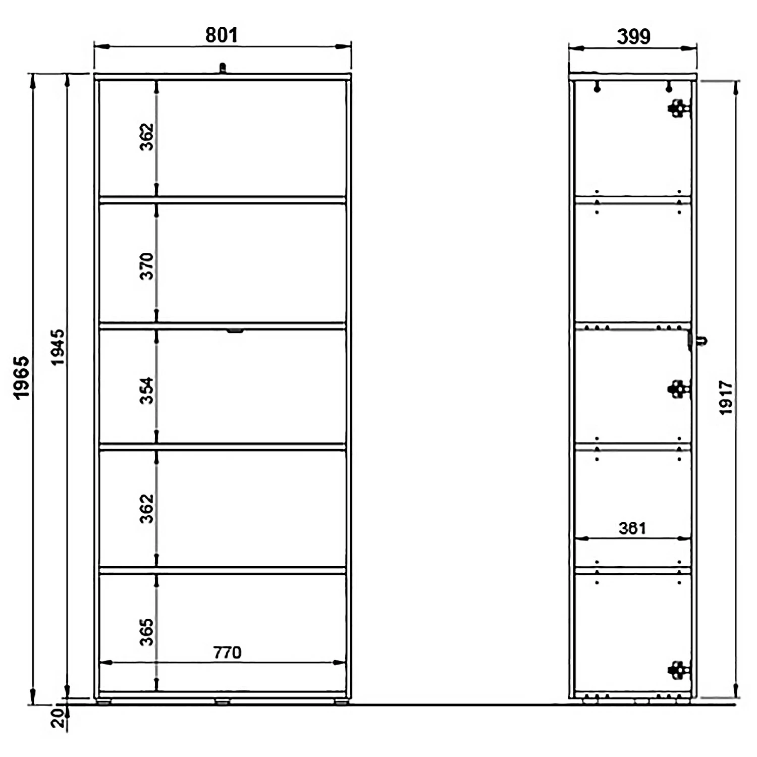 - Anzahl feste Fachböden: 1 Fachboden