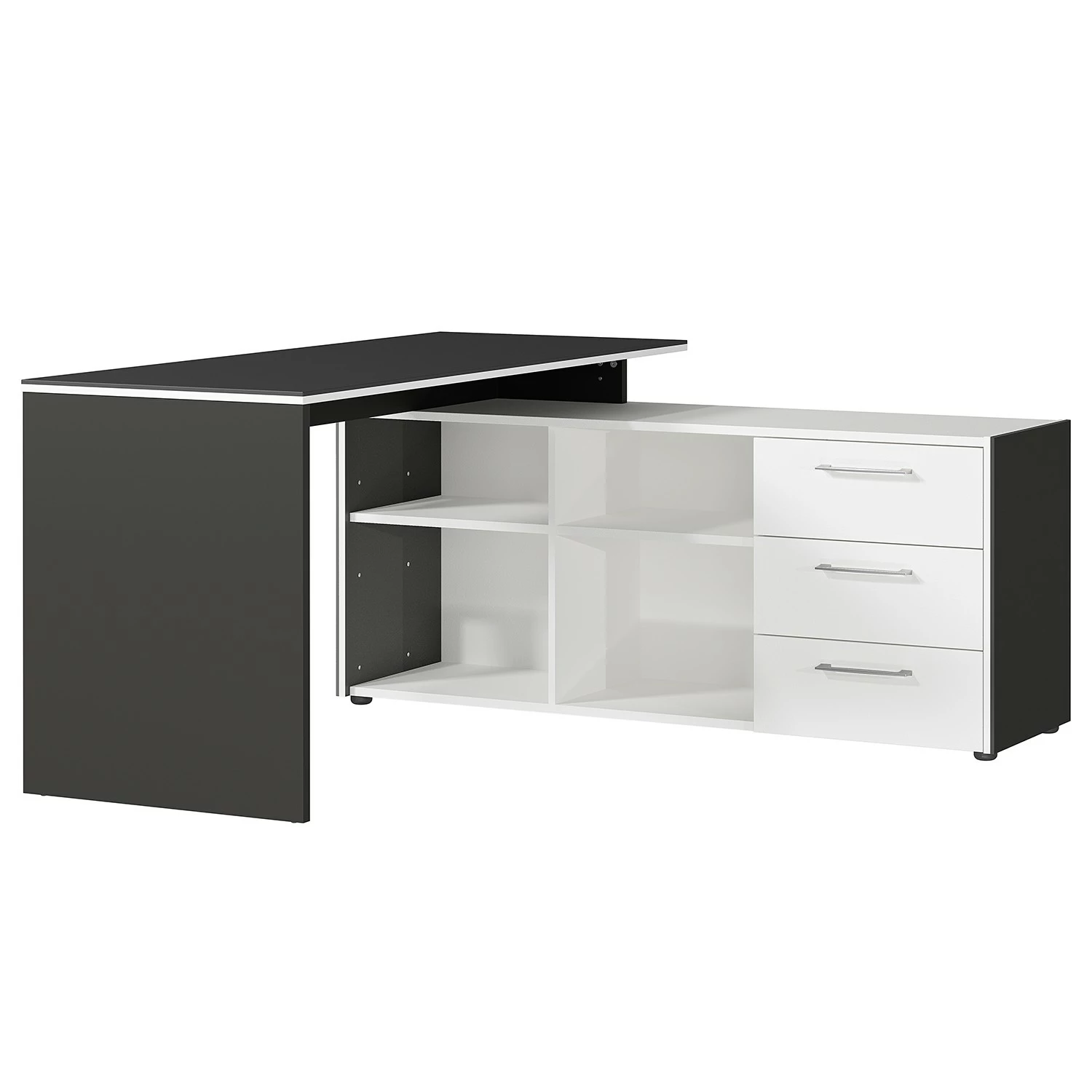 - Lieferumfang: Büroset bestehend aus 1 Eckschreibtisch & 1 Aktenschrank ohne Dekoration