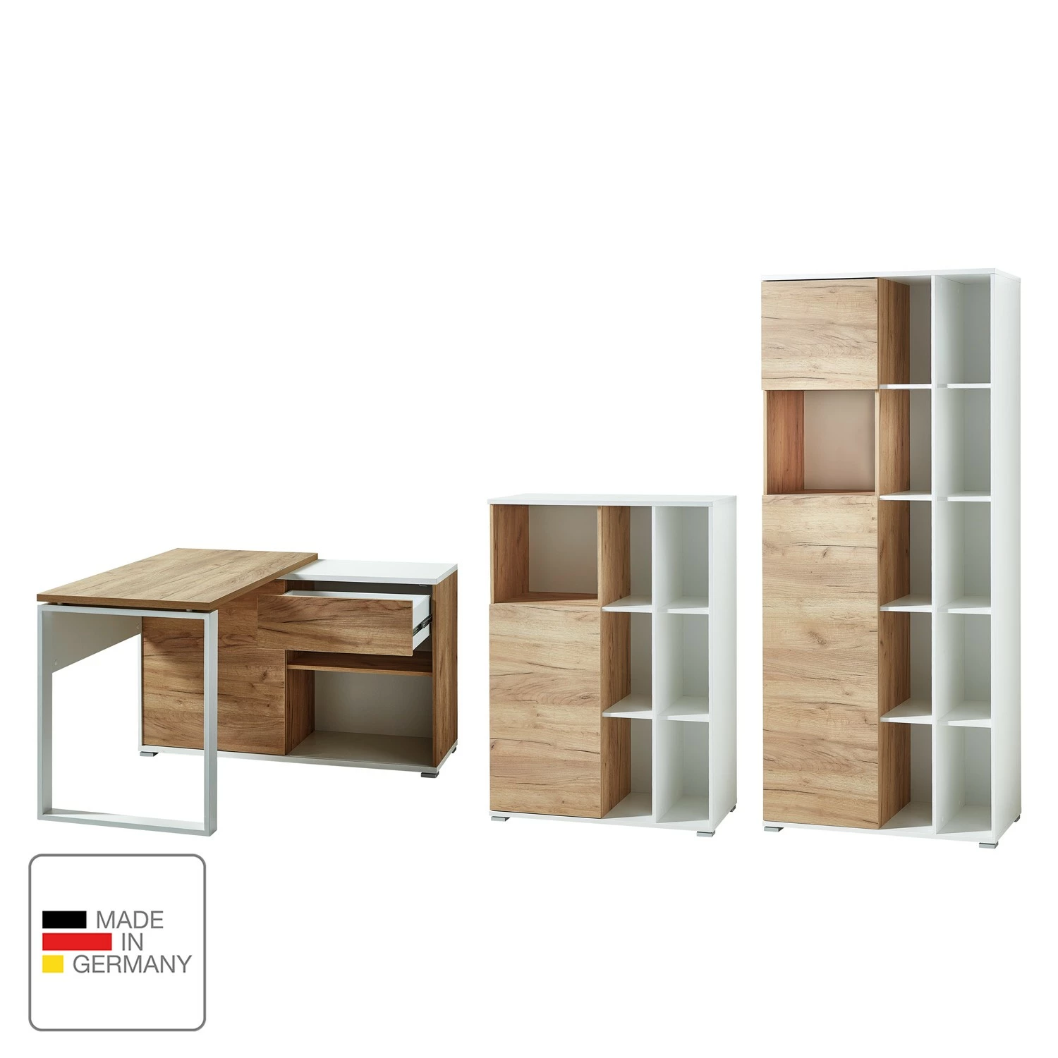 - Weitere Qualitätsmerkmale: Made in Germany, Melaminharzbeschichtet, Hochwertige ABS-Kanten, Push-to-open-Funktion, Schiebetür, Gespiegelt montierbar