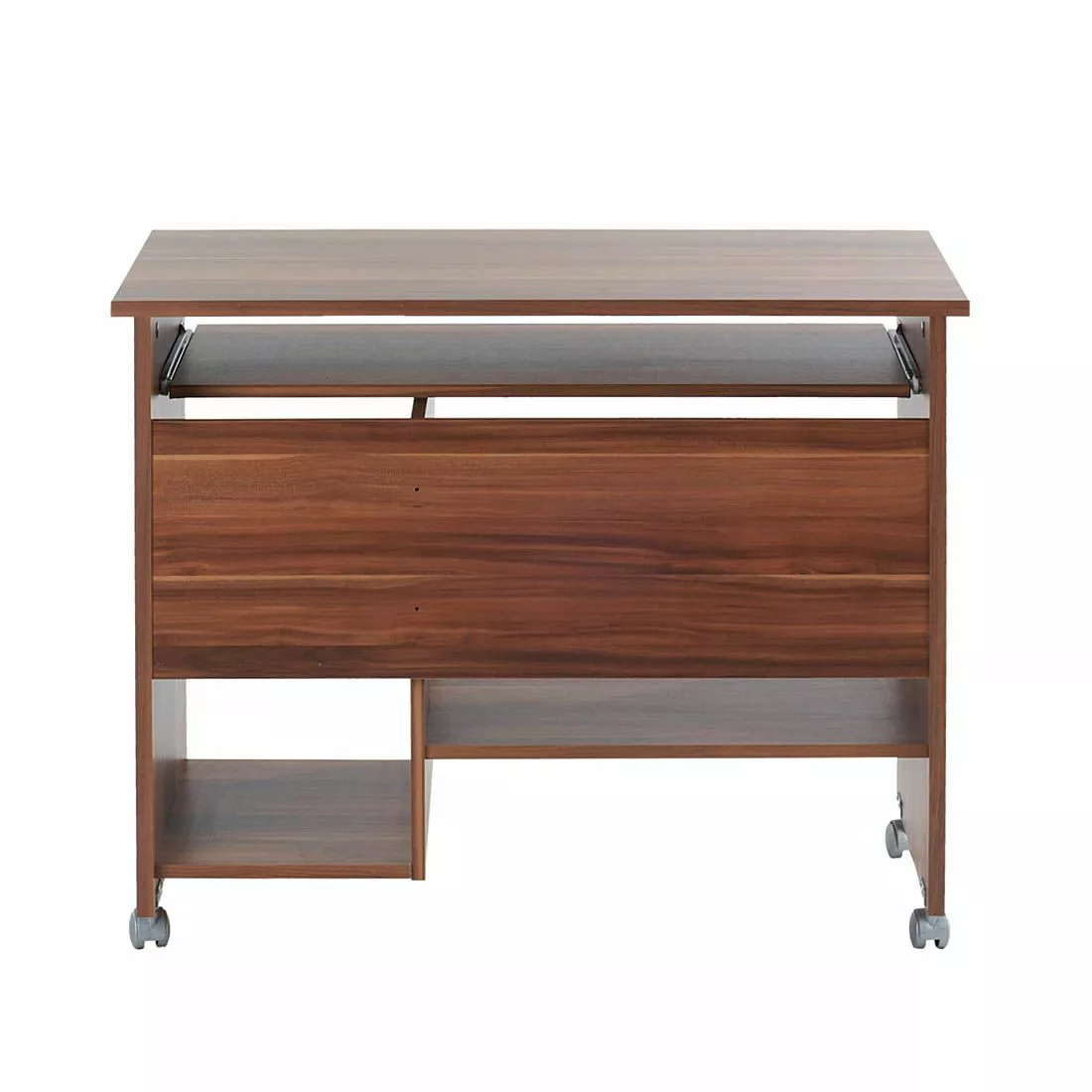 Für alle, die sich gerne modern einrichten, ist dieser braune Computertisch von Germania eine tolle Ergänzung zu den vorhandenen Möbeln. Das edle Walnussholz des Computertischs ist ein hochwertiges Material. Mithilfe der Rollen an den Beinen lässt er sich außerdem flexibel in verschiedenen Räumen nutzen.