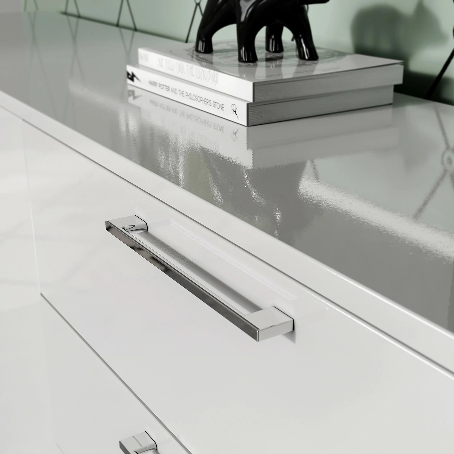 - Front & Deckplatte: Hochglanz Weiß