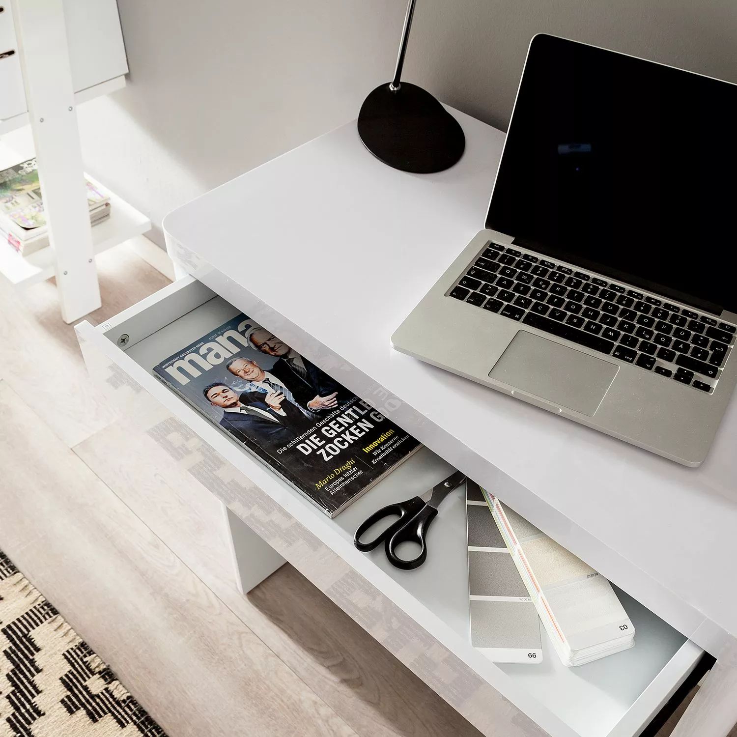 - Lieferumfang: Schreibtisch ohne Dekoration