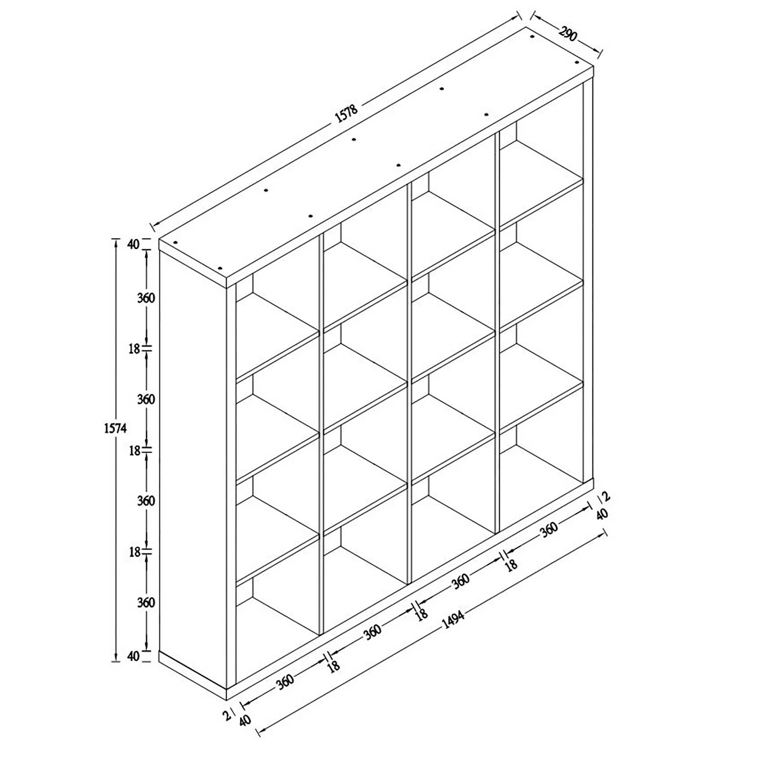 - Fächer: je 36 x 37 cm