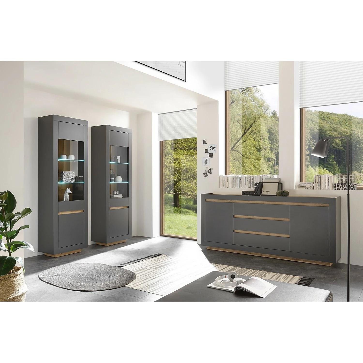 Loftscape Sideboard Accra – Anthrazit / Eiche Dekor