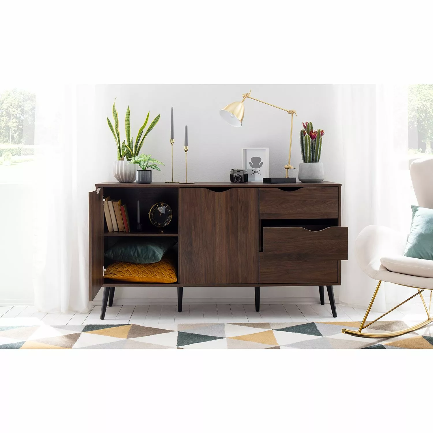 Ein absolutes Highlight in meinem Wohnzimmer! Das Sideboard ist nicht nur schön anzusehen, sondern auch sehr praktisch. Die Schubladen und Fächer bieten viel Stauraum.