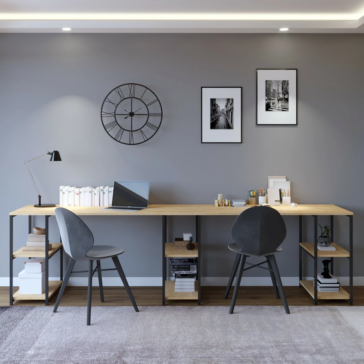 - Tischplatte & Ablage: Eiche Dekor