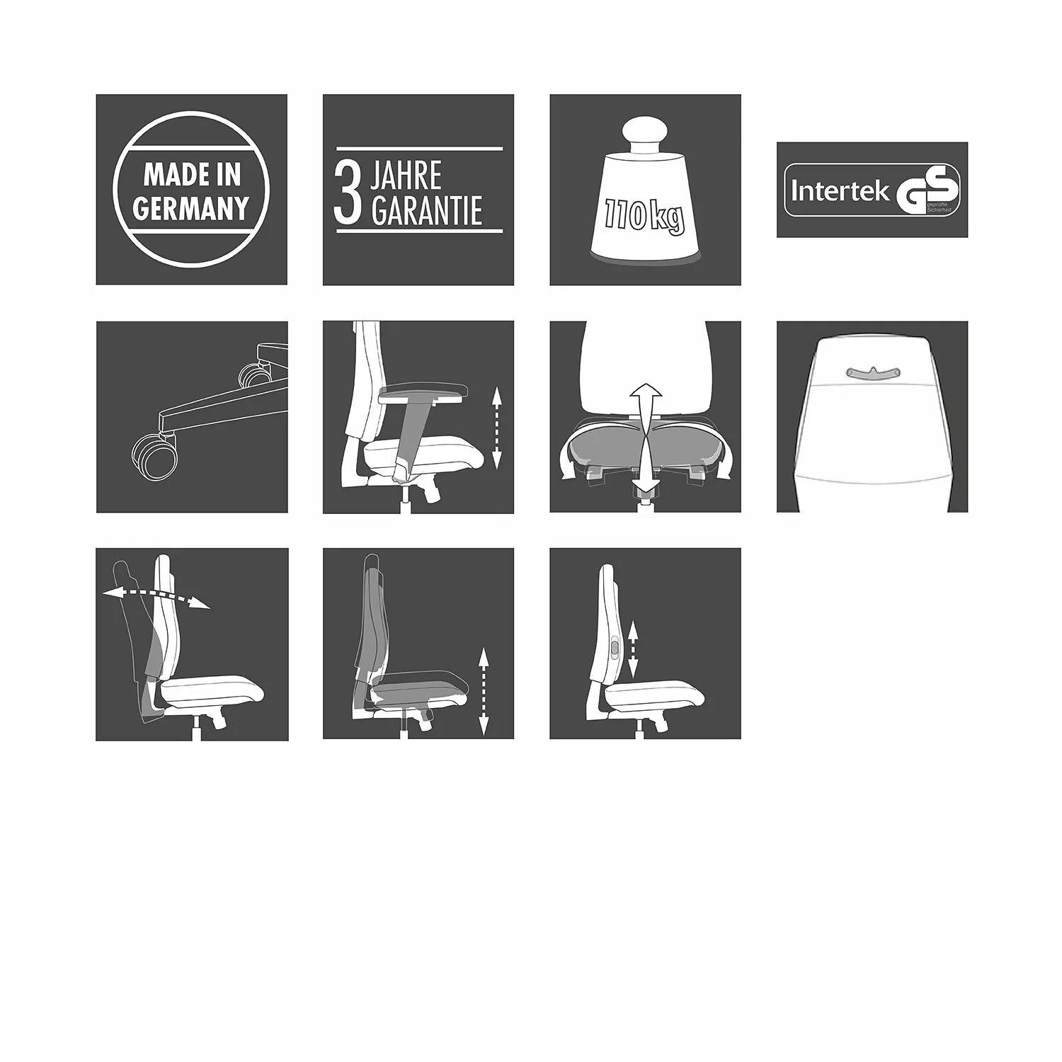 - Höhenverstellbare Lordosenstütze in Rückenlehne integriert
